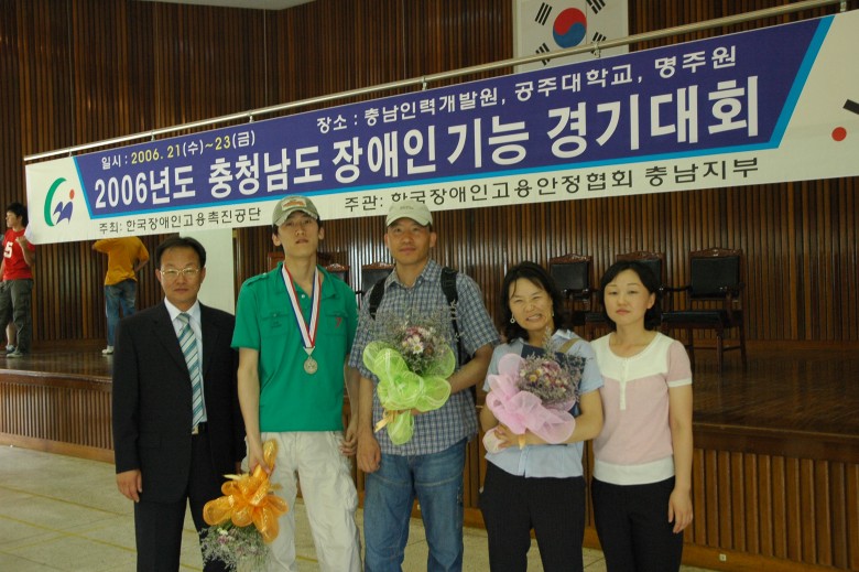 지난 21일부터 개최된 '2006충남장애인기능경기대회'에서 우리 복지관 훈련생들이 그동안 갈고 닦은 기량을 발휘하여 금 2개, 은, 동 각 1개를 수상하는 멋진 쾌거를 이루었습니다. 오늘(6월23일) 오전 10시 얼굴에 웃음 한가득을 안고 상을 받는 훈련생들이 자신의 미래를 위해 열심히 배우고 투자하는 모습에 희망의 박수를 보냅니다.