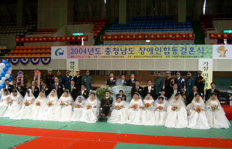 11월 5일 백제실내체육관에서 여러 하객들과 내빈들의 축복속에서 충남지역 15개 시*군 장애인 부부 15쌍이 합동결혼식을 올렸습니다. 경제적 어려움 혹은 다른 이유로 결혼식을 올리지 못한 이들 부부에게 오늘의 설레임, 행복, 사랑은 가장 큰 선물이었습니다. 오늘을 간직한채 앞날에 행복만이 가득하길 소망하며 이날 함께하셔서 자리를 빛내주신 여러 관계자분들, 자원봉사자 여러분께 깊은 감사의 말씀을 드립니다.